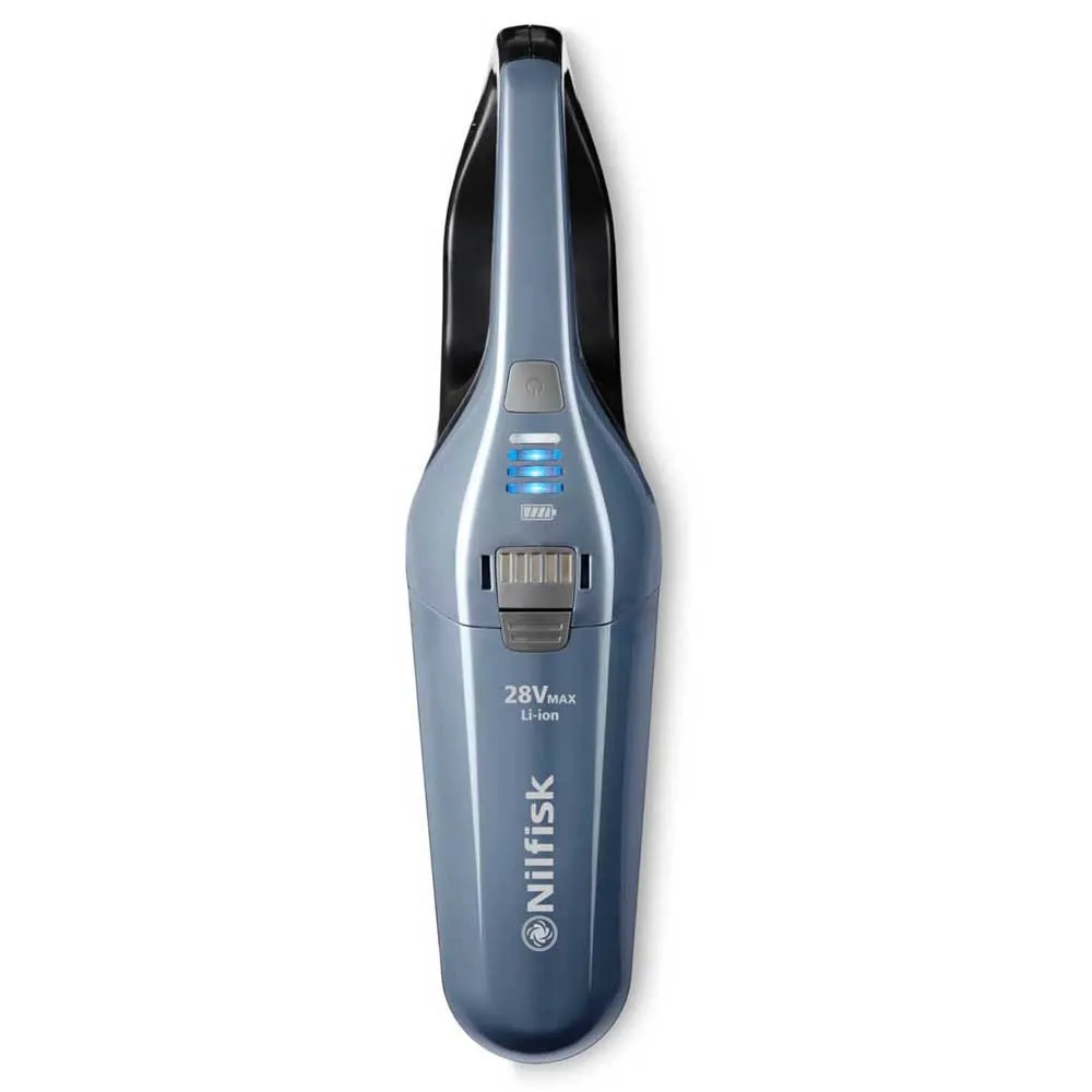 - Nilfisk Easy 28v Max Blue 2-i-1 er en ledningsfri og praktisk batteristøvsuger, der kan bruges som en klassisk stangstøvsuger eller som en praktisk håndstøvsuger.