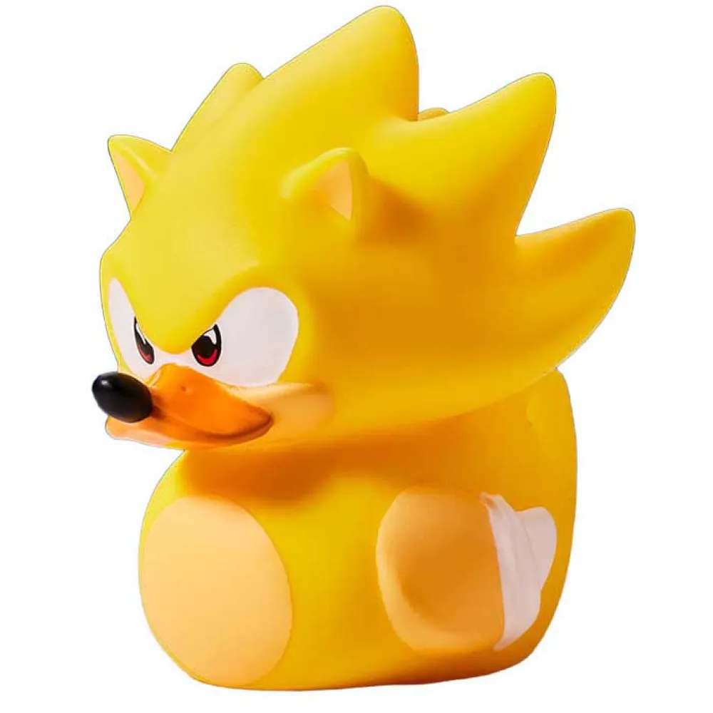 Repræsenterer den kraftfulde Super Sonic-transformation i en sjov, cosplaying-andeform.