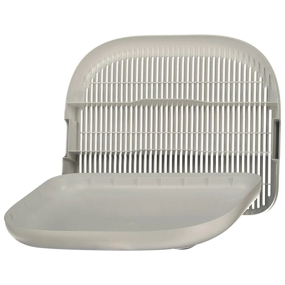 Når din kat kommer ud af kattebakken, kan den rengøre sine poter ved at gnide kanterne af hullerne i topdækslet, så snavs kan falde ned i kammeret inde i trinnene.