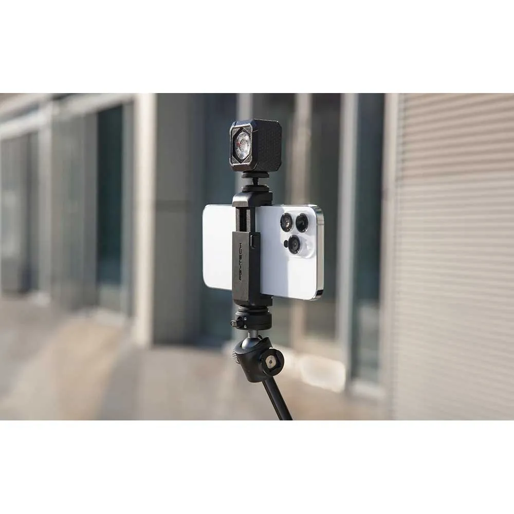 - Vil du fastgøre yderligere tilbehør til din telefon? PGYTECH mount giver dig mulighed for at gøre det! På den øverste del er der en cold shoe-interface, som giver dig mulighed for hurtigt at montere en mikrofon, belysning eller andre ting. På den anden side er der i bunden af tilbehøret et ¼-tommers hul, så du nemt kan montere din telefon på et stativ eller en selfie-stick.