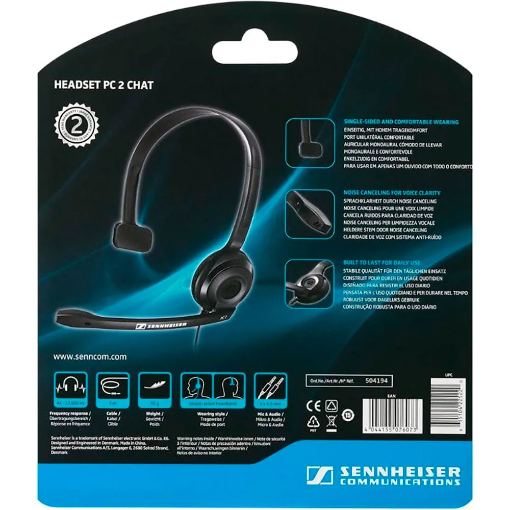 Pc 2 Chat giver dig ikke kun den fremragende Sennheiser Sound, den har også en højkvalitetsmikrofon med aktiv støjreduktion og et behageligt og let design, der giver dig mulighed for at chatte i timevis.