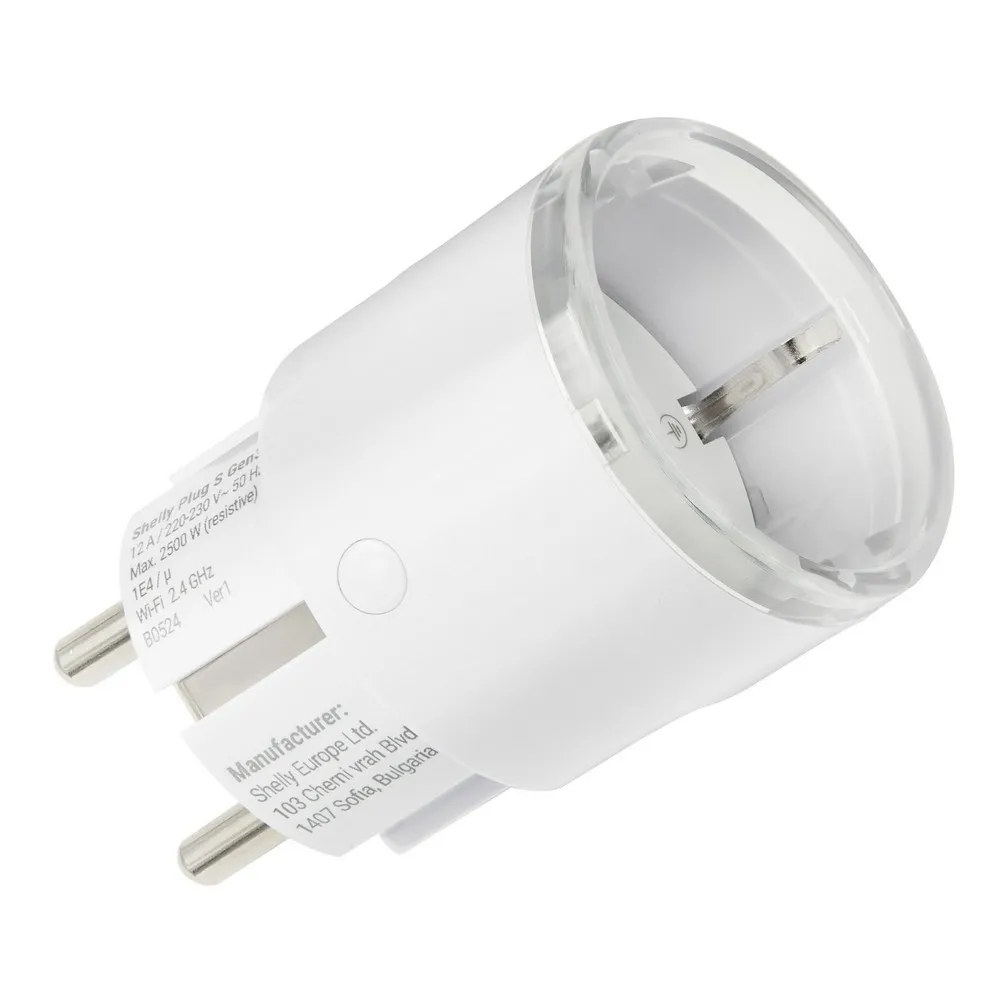 Shelly Plus Plug S Gen 3 er en næste-generations smart stikkontakt designet til nemt at overvåge og kontrollere lys, varme eller enhver elektrisk enhed i dit hjem.