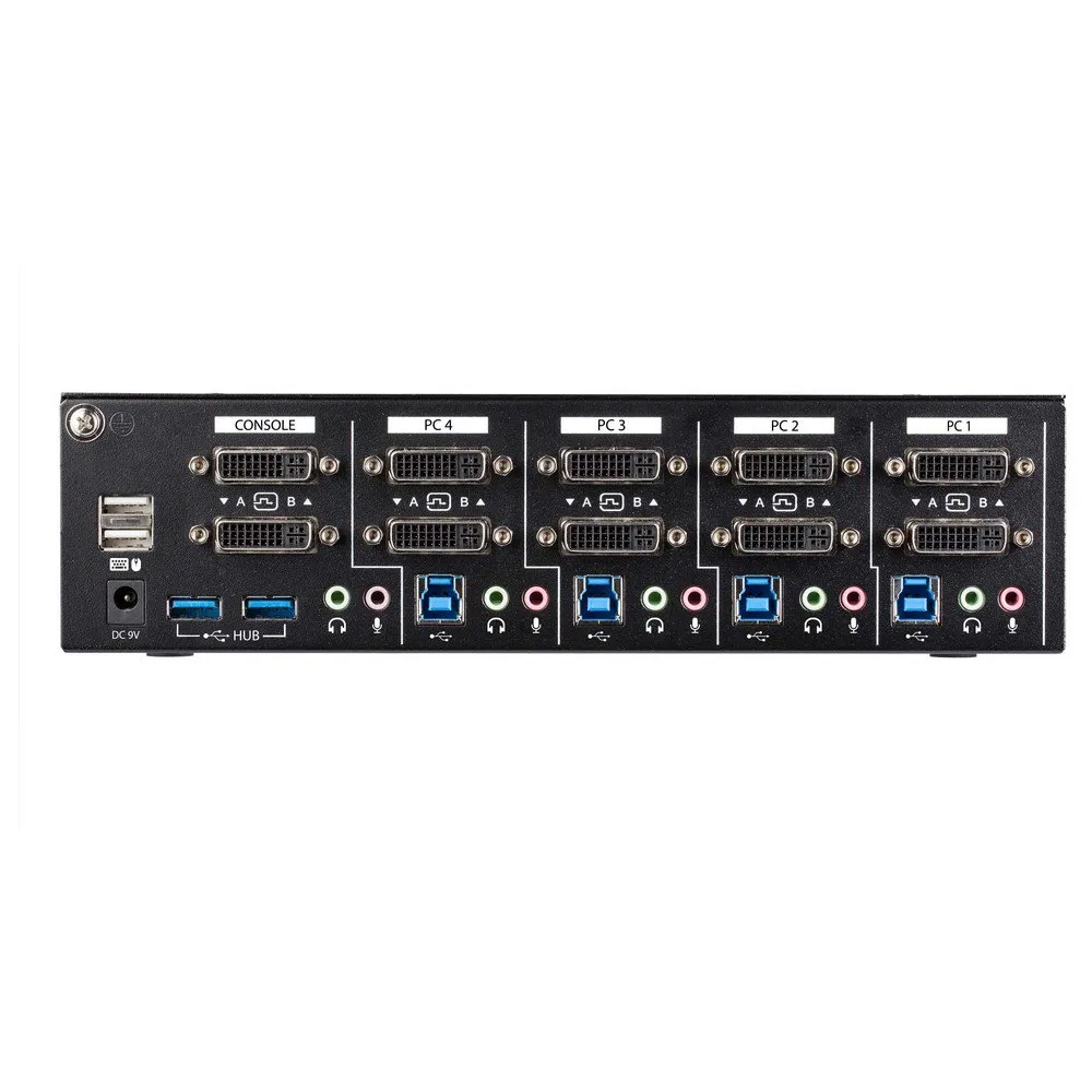 - KVM-switchen understøtter fire separate multimediecomputersystemer og brugen af en dual-link DVI-dobbeltskærmsarbejdsstation, hvilket øger produktiviteten ved at give dig adgang til mere information på samme tid.