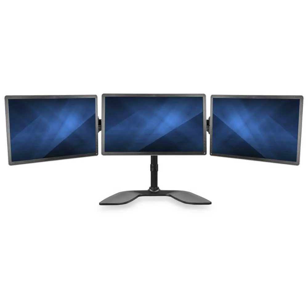Med sin kraftige stålkonstruktion og aluminiumsbase holder den tredobbelte skærmstativ dine skærme sikkert og giver langvarig ydelse. Overfladefinishen hjælper med at modstå ridser.