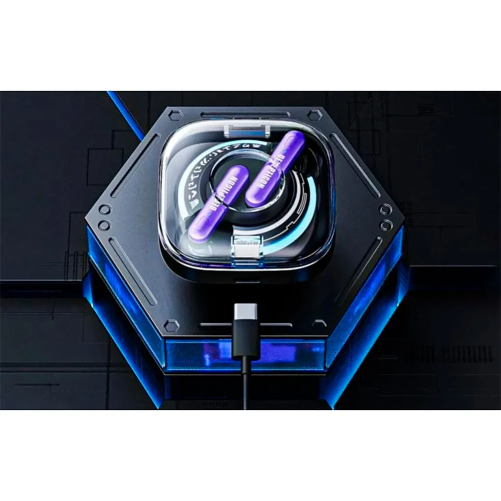 TWS Transformers TF-T03, Hi-Fi lyd og Bluetooth 5.3 hovedtelefoner, kompatible med Android, iOS og Windows enheder, i lilla.