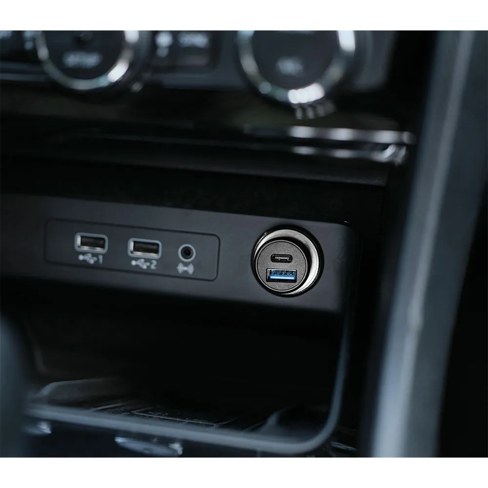 38W biloplader med USB-C og USB-A porte til hurtig opladning af enheder på farten.