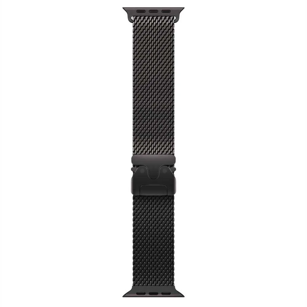 Das Titan-Milanaise-Armband besteht aus Titangewebe in Luft- und Raumfahrtqualität mit einer sicheren Schnalle im Fallschirmspringer-Stil.