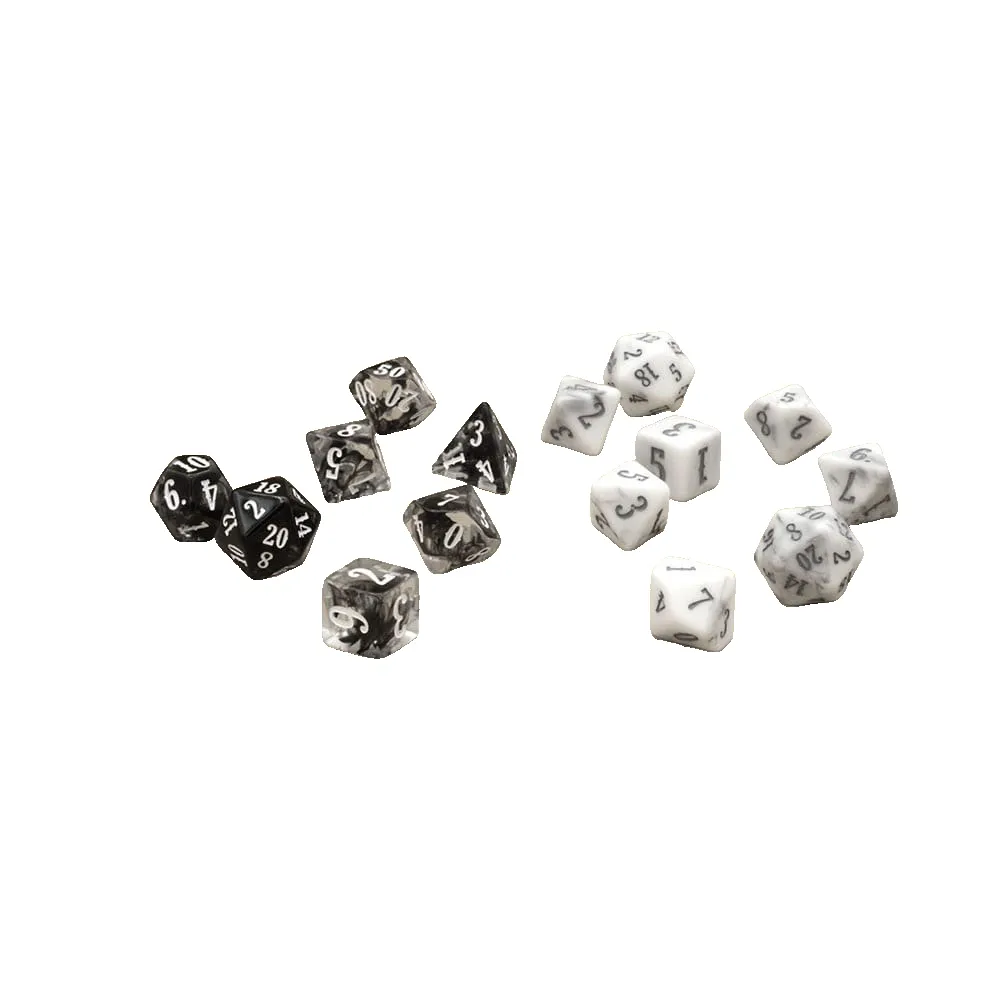 Erleben Sie den ultimativen Komfort und taktischen Vorteil mit einer umfassenden Sammlung von 14 polyedrischen Würfeln. Dieses erweiterte Set bietet zwei vollständige Sätze von je sieben Würfeln, wodurch das Ausleihen oder erneute Würfeln in kritischen Momenten entfällt. Bewältigen Sie nahtlos komplexe Schadensberechnungen, würfeln Sie mit Vorteil oder Nachteil oder verfolgen Sie anhaltende Gifteffekte, ohne die Aktion jemals unterbrechen zu müssen. Die Einbeziehung von zwei unterschiedlichen, sich ergänzenden Farbsets bietet eine unvergleichliche Spielklarheit. Weisen Sie eine Farbe Ihren Standardangriffen und Fertigkeitswürfen zu und die andere Ihren einzigartigen alchemistischen Kreationen, Mutagenen oder Bombenschaden. Dieses intuitive System optimiert Ihren Zug und ermöglicht es Ihnen, sich auf Strategie und Geschichtenerzählen zu konzentrieren.