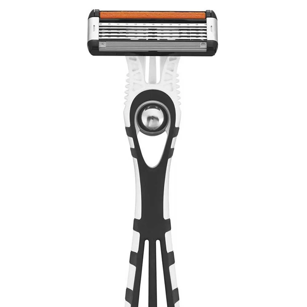 - Ausbalancierende Metallkugel, die das Gewicht für eine bessere Kontrolle der Rasur erhöht.