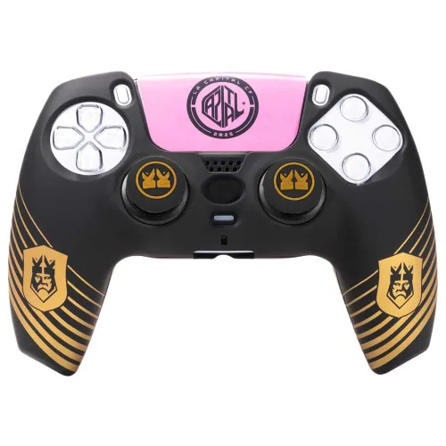 Spiele wie ein König, Kit. Hartschalenetui + Griffe: Premium-Gefühl-Paket mit einem goldenen Touch an den Controller-Hörnern. Strukturierte Griffe für besseren Halt. 12 Aufkleber für das PS5-Controller-Touchpad: Passe deinen Controller an dein Lieblingsteam an. Bist du Team Lamine Yamal? Klebe den La Capital-Aufkleber auf. Team TheGrefg? Nimm den Saiyans-Aufkleber. Du entscheidest. Sei der König: Dies ist das offizielle Paket der Kings League. Rutschfest: Die Oberfläche erzeugt einen samtartigen Film, der hilft, dein Gameplay zu verbessern.