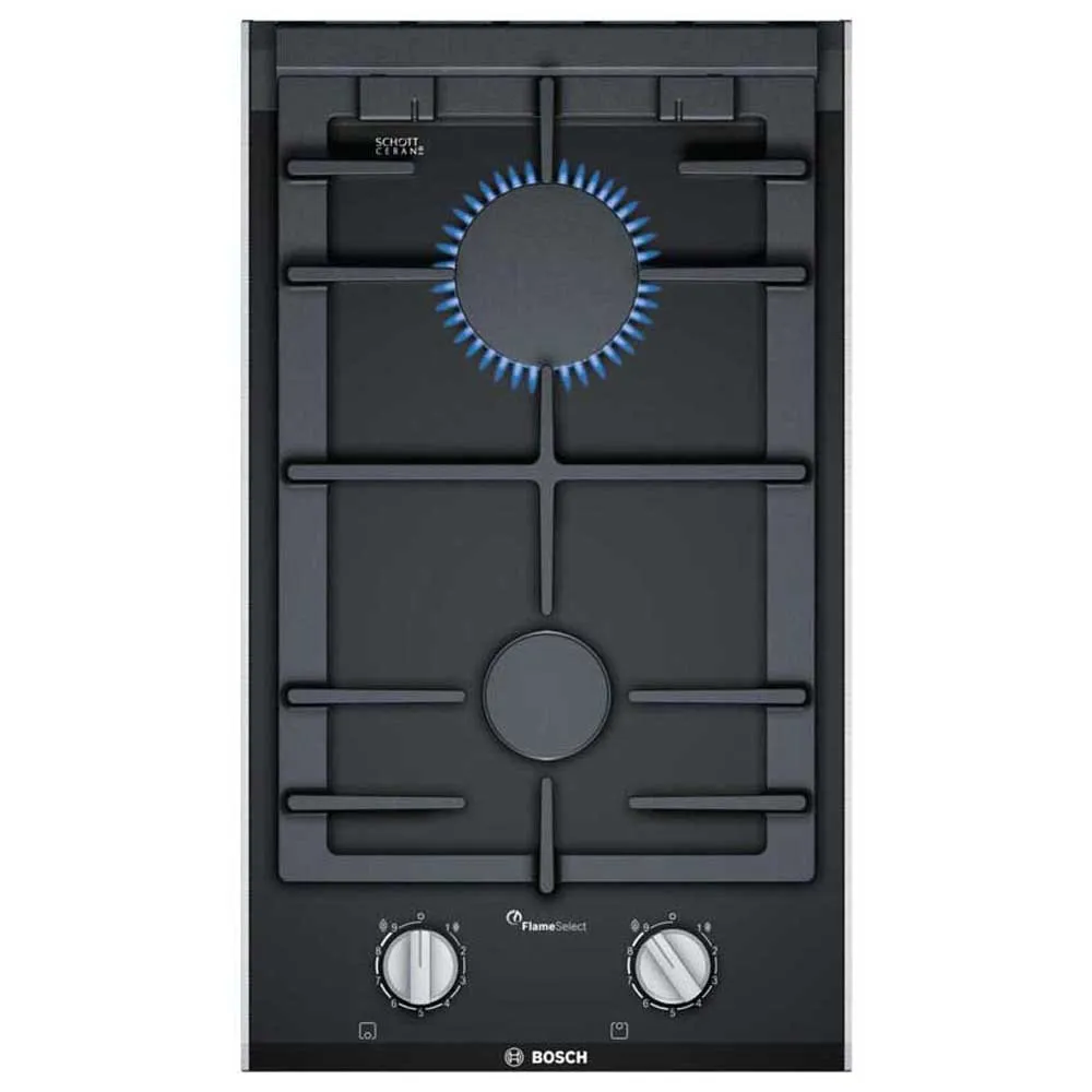 Erleben Sie ultimative Kochkontrolle mit dem Bosch PRB3A6B70 Gaskochfeld. Seine innovative FlameSelect-Technologie bietet Ihnen neun präzise Flammenstufen für jederzeit perfekte Ergebnisse, vom sanften Köcheln bis zum kräftigen Anbraten. Dieses elegante 30 cm Kochfeld verfügt über eine schwarze Glaskeramikoberfläche und zwei Brenner mit stabilen, durchgehenden Gusseisen-Topfträgern. Die Reinigung ist mühelos, da die hochwertigen Topfträger vollständig spülmaschinenfest sind. Kochen Sie nachhaltiger mit diesem biomethanfähigen Kochfeld, das elegantes Design mit kulinarischer Präzision verbindet