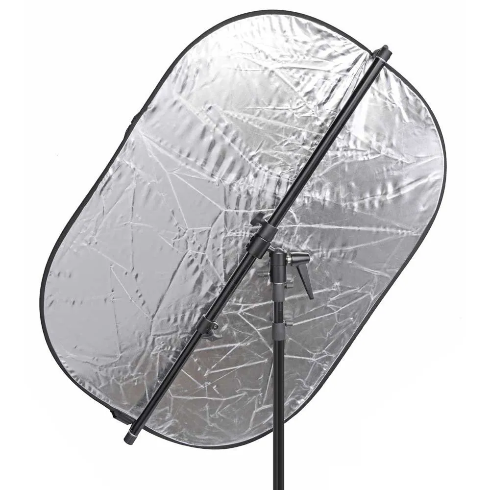 Die hochwertige Aluminiumhalterung sorgt nicht nur für Stabilität, sondern auch für Mobilität, die Sie bei Ihrer täglichen fotografischen Arbeit benötigen. Die Aluminiumstange, die auf ca. 121cm, ist mit einem beweglichen Reflektorhalter ausgestattet, in den Sie faltbare Reflektoren von 65cm bis max. 121cm Durchmesser. Dank der universellen Stativhalterung können Sie den praktischen Helfer auf allen Stativen befestigen und mit Hilfe des Neigekopfes den Reflektor in jede gewünschte Position bringen. Damit können Sie Ihre Reflektoren überall einsetzen.