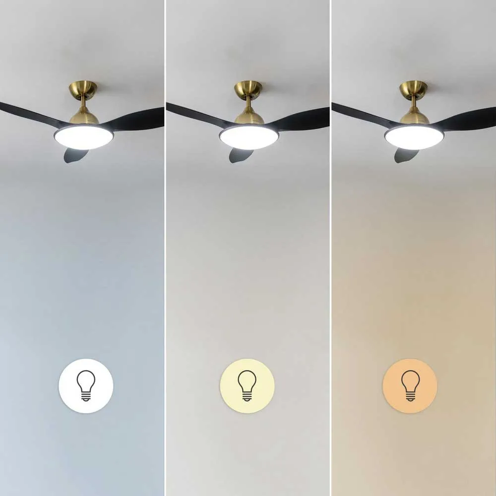 EnergySilence 4800 Light GoldBlack 35 W Deckenventilator mit DC-Motor und 48 Zoll mit 36W LED-Licht, Fernbedienung, Timer, 6 Geschwindigkeiten und 3 Flügeln.