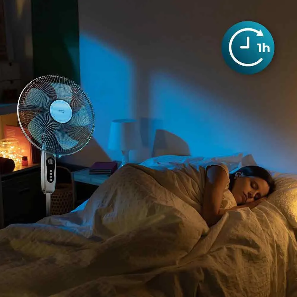 - 1-Stunden-Timer: Programmierbarer Timer bis zu 1 Stunde, mit dem Sie die gewünschte Betriebszeit auswählen können, nach der sich der Ventilator ausschaltet.