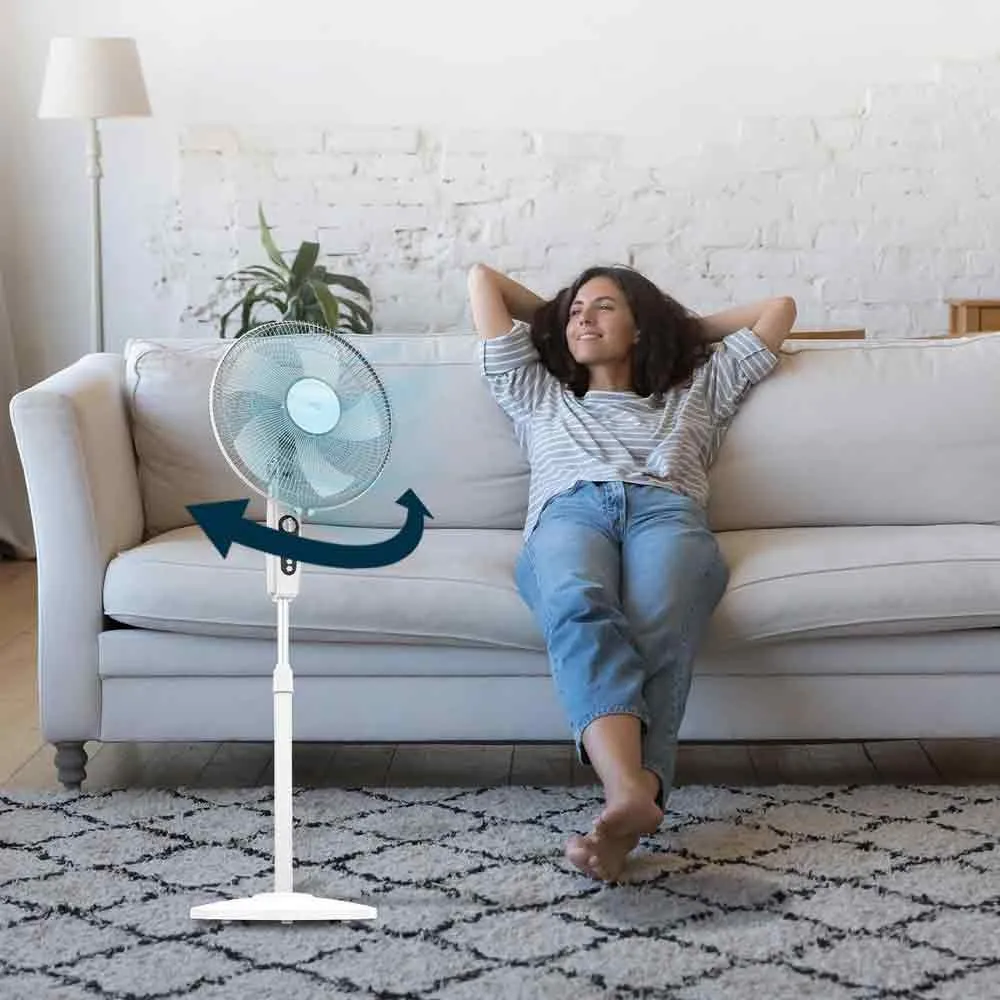 - 40 cm (16 Zoll): Sie bieten einen großen Durchmesser, der den Luftauslass verbessert, was in Kombination mit seinen 5 Flügeln und dem Schutzgitter einen korrekten Belüftungsprozess im Raum erzeugt und die Luft gleichmäßiger verteilt.