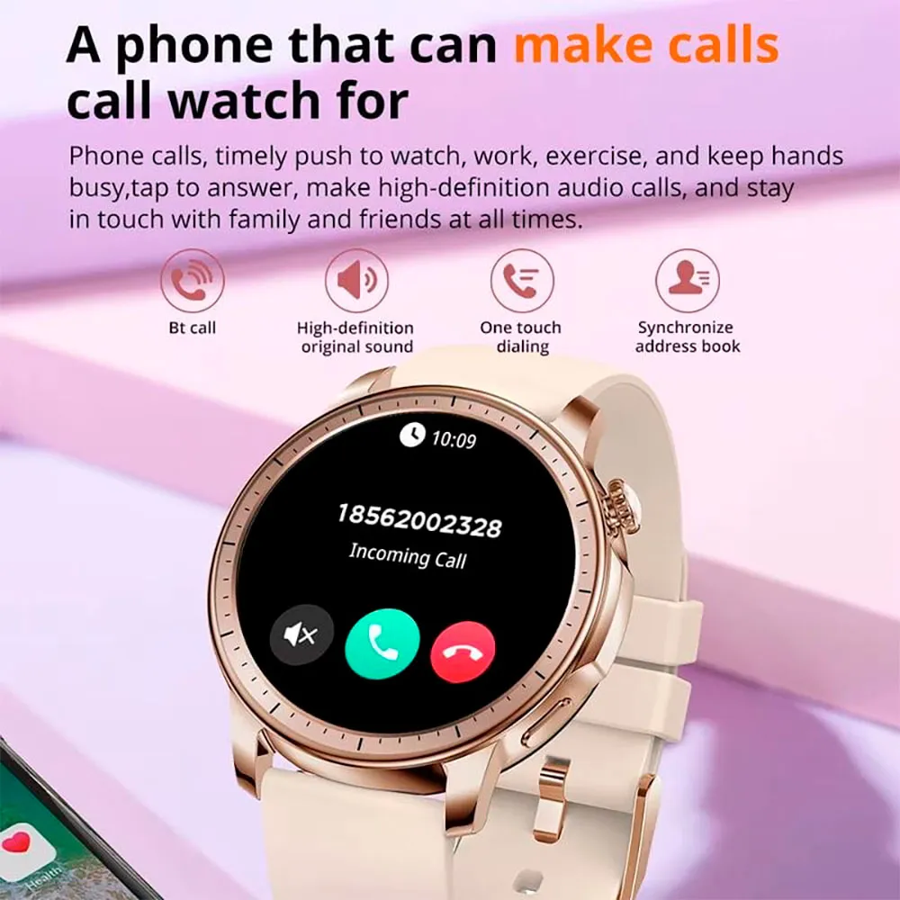 1.32-Zoll-AMOLED-Bildschirm - Dual Bluetooth - Bluetooth-Anrufe - IP68 - Herzfrequenz- und SpO2-Sensor - Blutdrucksensor - Sportmodi - Weibliche Gesundheitskontrolle - Bis zu 5 Tage - Silber.