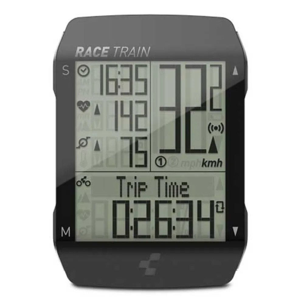 Mit einem schwarzen Äußeren, das zu jedem Fahrrad passt, verfügt der CUBE Race Train Fahrradcomputer über ein klares und einfach ablesbares Display, das Kennzahlen wie Geschwindigkeit, Distanz, Zeit und sogar die Herzfrequenz anzeigt, wenn er mit einem kompatiblen Monitor gekoppelt ist. So können Radfahrer ihre Fortschritte in Echtzeit verfolgen und ihr Tempo entsprechend anpassen.