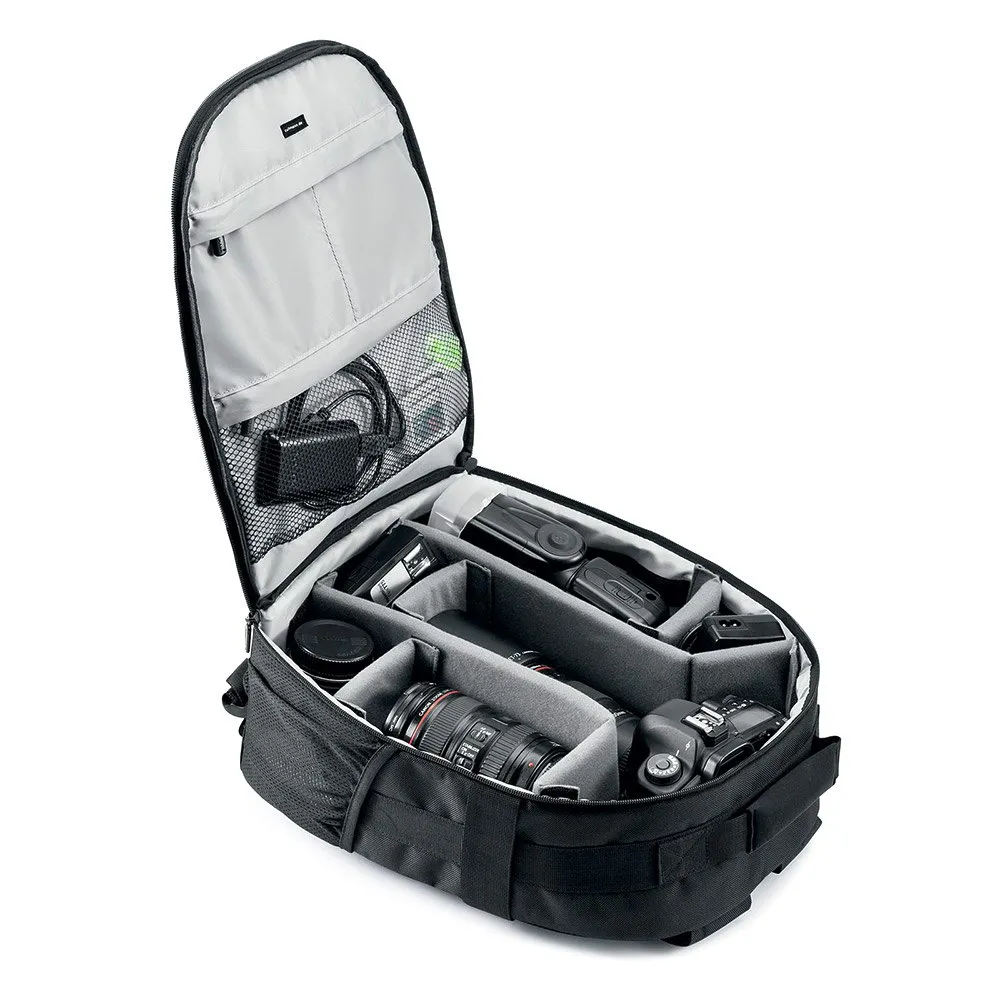 Bietet ausreichend Platz für mittelgroße DSLR-Geräte und Zubehör wie Speicherkarten, Mikrofasertücher usw.