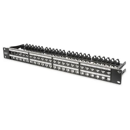Das DIGITUS® 48 Port 1HE modulare Patchpanel gewährleistet eine hohe Dichte mit dem Vorteil von 48 Keystone-Buchsen in nur einer Höheneinheit.