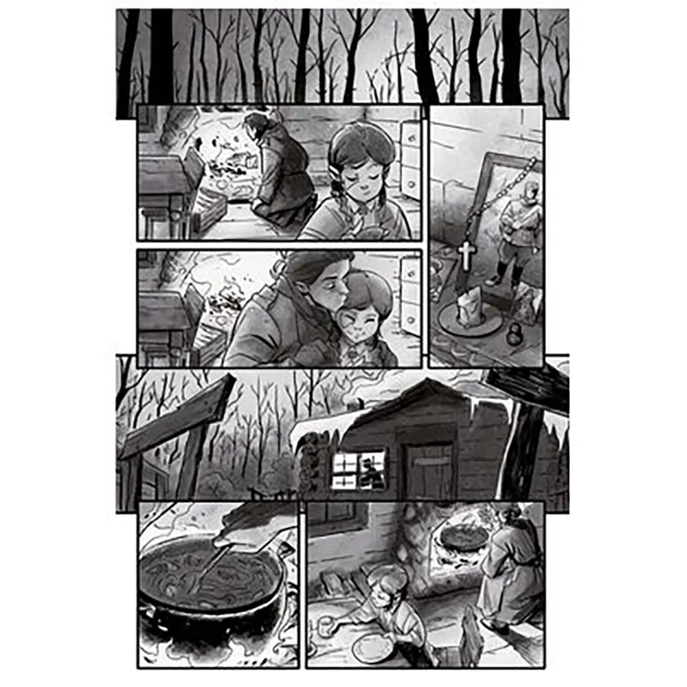 Eines der bedeutendsten Merkmale von Hojas Rojas ist sein atemberaubender visueller Stil. Die Kunstwerke sind eine Meisterklasse des atmosphärischen Geschichtenerzählens, die starke Kontraste und filigrane Linienführung nutzen, um eine Welt zu schaffen, die sowohl schön als auch zutiefst beunruhigend ist. Die Beherrschung von Schatten und Licht durch den Künstler erweckt die unheimliche Kulisse zum Leben und macht die Umgebung selbst zu einem Charakter. Diese Graphic Novel ist ein Beweis für die Kraft der visuellen Erzählung, bei der jedes Panel akribisch komponiert ist, um den spannungsgeladenen Ton der Geschichte zu verstärken. Es ist ein visuelles Fest für Kenner hochwertiger Comic-Kunst, die es schätzen, wenn Illustration und Geschichte in perfekter, eindringlicher Harmonie sind.