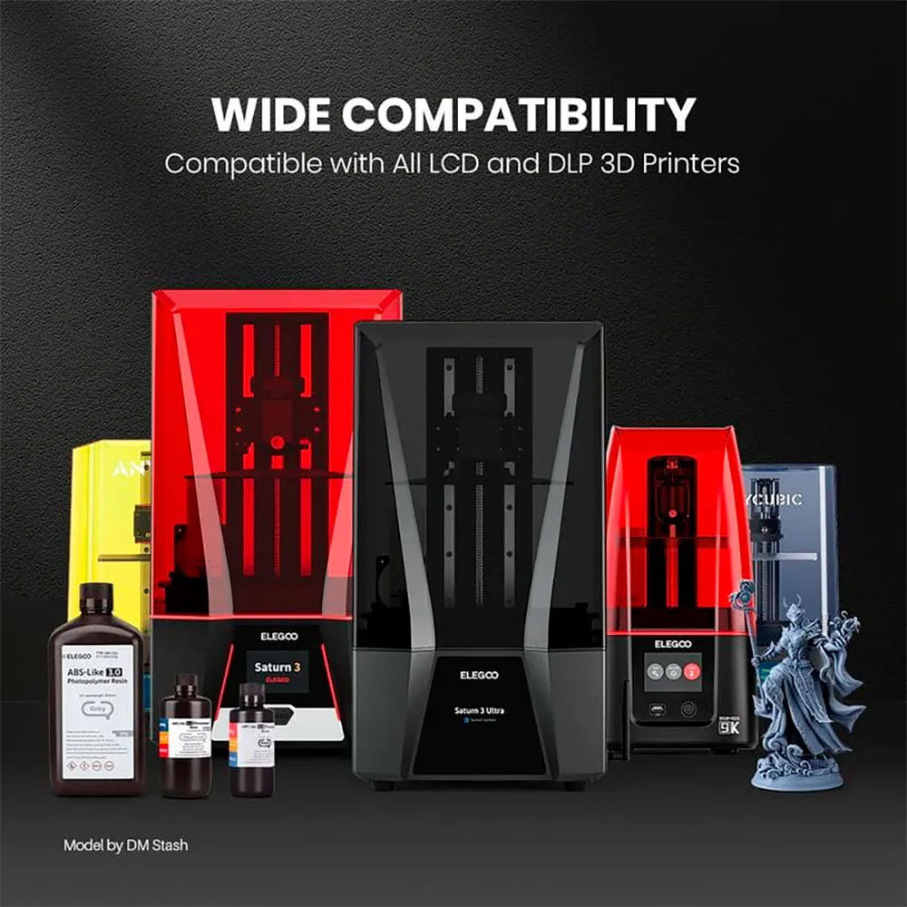 Das neue ELEGOO ABS V3.0 Resin ist mit der großen Mehrheit der 3D-Drucker kompatibel und ist grau.
