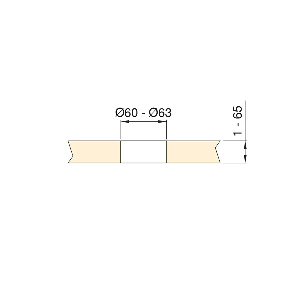 Die Installation ist sehr vielseitig, da nur eine 60-mm-Bohrung erforderlich ist (sie passt perfekt zu Schreibtischen, die bereits mit 60-mm-Kabelverschrautungen ausgestattet sind) und auf Oberflächen mit großer Dicke zwischen 1 und 65 mm montiert werden kann.