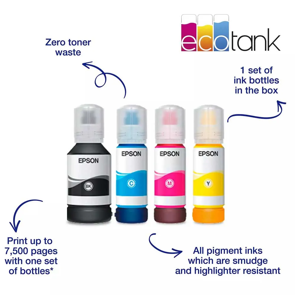 Die EcoTank 113 Tinten-Serie verfügt über pigmentierte Tinten für wisch-, wasser- und markerfeste Ausdrucke.