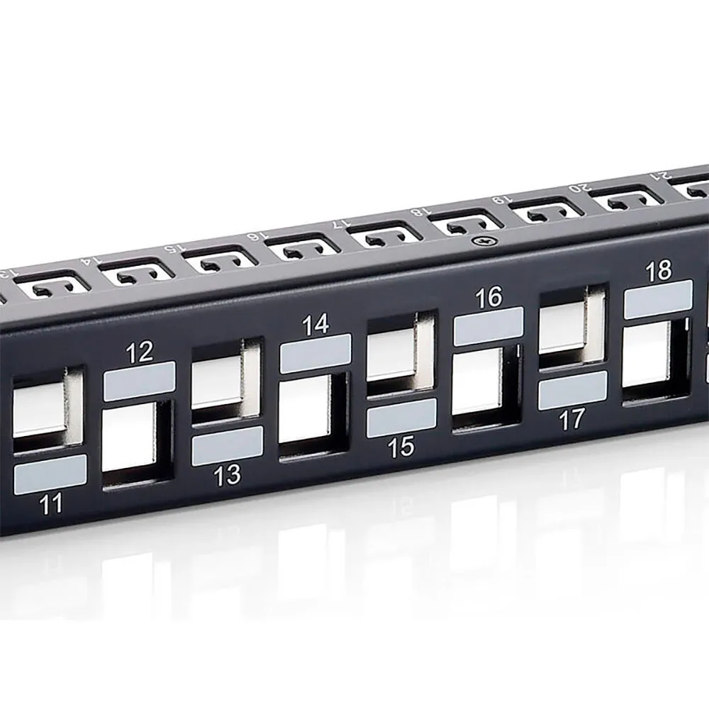 Dieses Patchpanel mit 24 Ports wird empfohlen, mit equip® geschirmten Keystone-Buchsen und -Kabeln verbunden zu werden, um eine hervorragende Leistung zu erzielen.