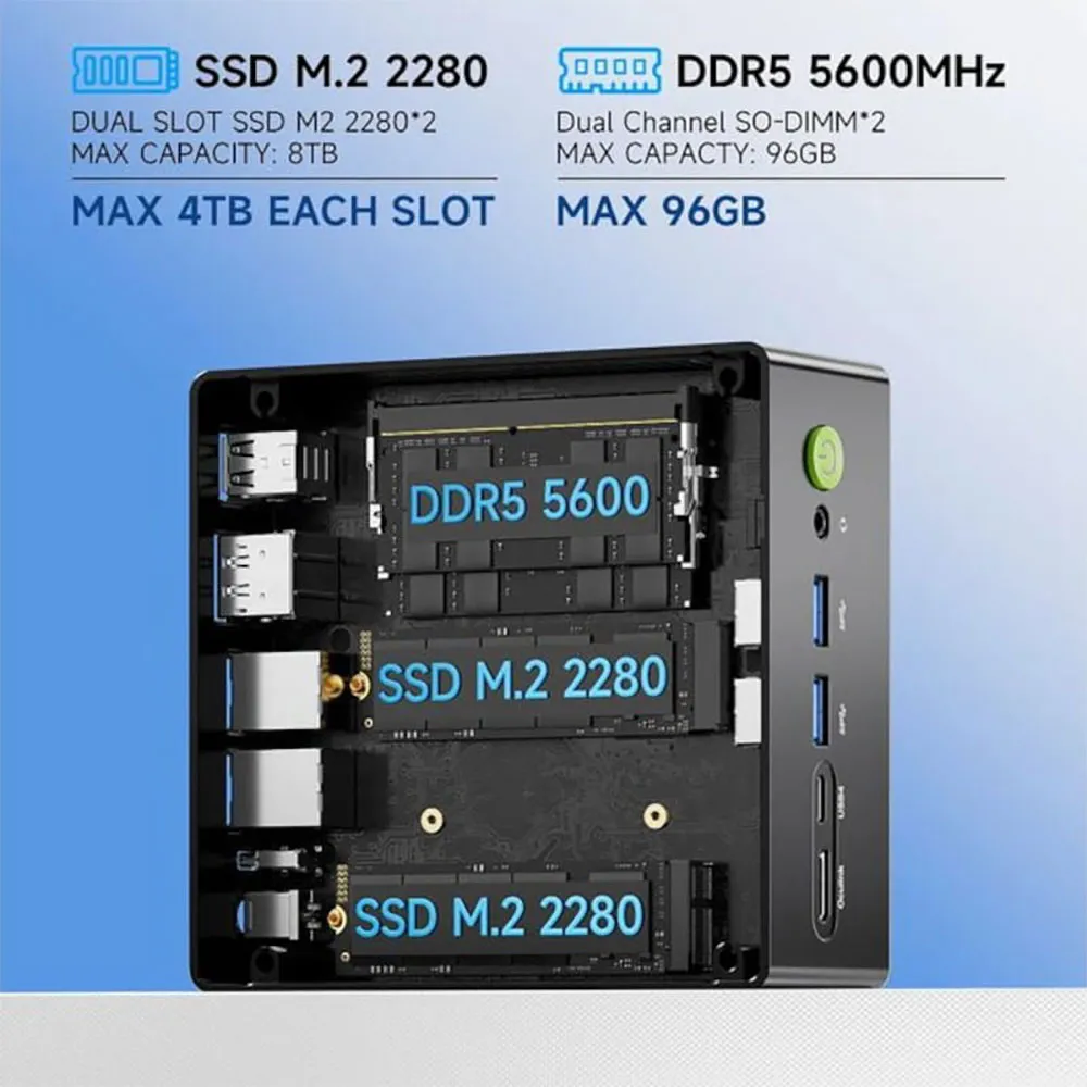 Technische Daten GMKtec K8 Plus AMD Ryzen 7 8845HS/Kein Ram/ Keine SSD/Schwarz - Mini PC Gaming:.