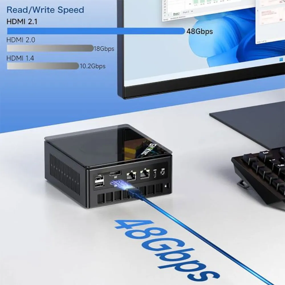 Um ihn zum Spielen von Videospielen verwenden zu können, ohne zu stark zu überhitzen, verfügt dieser neue Mini-PC über ein effizientes Kühlsystem, das aus zwei leistungsstarken und leisen Lüftern besteht.
