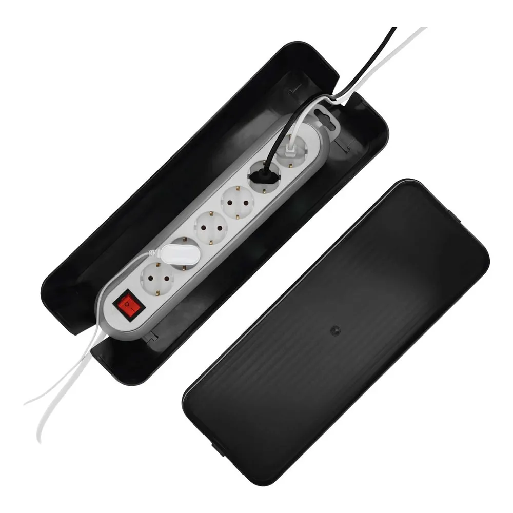 Entwickelt für maximale Bequemlichkeit und universelle Anwendung, ist diese Kabelbox ein herausragendes Produkt in der Welt der Kabelorganizer. Ihre großzügigen Innenmaße sind speziell darauf ausgelegt, größere Steckdosenleisten aufzunehmen, sodass selbst die komplexesten Setups ordentlich verstaut werden können. Praktische Kabelauslässe sind auf beiden Seiten der Box positioniert, was eine flexible und einfache Verlegung all Ihrer Kabel ermöglicht. Für unerschütterliche Stabilität ist der Boden mit rutschfesten Gummifüßen ausgestattet, die garantieren, dass die Box auf jeder Oberfläche, von Holzböden bis zu polierten Schreibtischen, sicher an ihrem Platz bleibt.