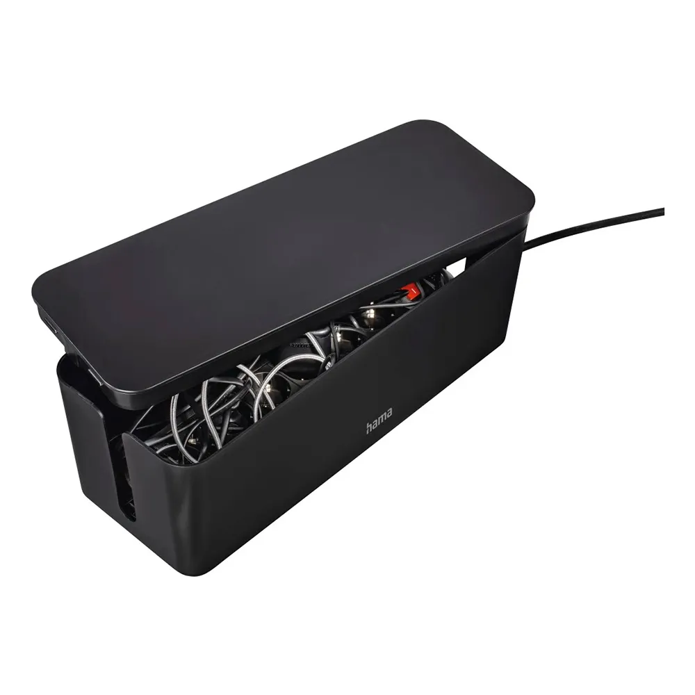 Erleben Sie die sofortigen visuellen und praktischen Vorteile eines überlegenen Kabelmanagements. Der Hama Maxi Kabelmanager verbirgt sofort unordentliche Steckdosenleisten und überschüssige Kabellängen und schafft so einen ruhigen und professionell aussehenden Raum. Dies ist mehr als nur eine ästhetische Aufwertung; es ist eine entscheidende Sicherheitsmaßnahme. Durch das Einschließen von Steckdosenleisten und elektrischen Anschlüssen schützt er neugierige Kinder und Haustiere vor potenziellen Gefahren. Darüber hinaus schützt er Ihre wertvolle Elektronik und Kabel vor Staub, Verschüttungen und versehentlichen Beschädigungen, verlängert deren Lebensdauer und gewährleistet eine zuverlässige Leistung. Das durchdachte Design fördert zudem eine bessere Luftzirkulation um Ihre Netzteile und Ladegeräte, was Überhitzung vorbeugt und einen optimalen Betrieb aufrechterhält.