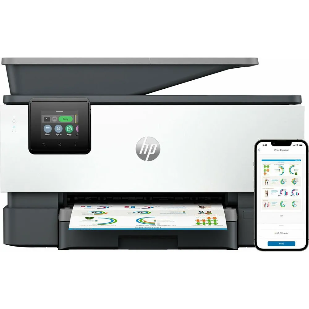 Steigern Sie die Produktivität mit dem HP OfficeJet Pro 9120B, dem All-in-One-Tintenstrahldrucker, der für moderne Büros und hybride Teams entwickelt wurde. Drucken, kopieren, scannen und faxen Sie mühelos in professioneller Farbqualität. Dieses Kraftpaket bietet schnelle Druckgeschwindigkeiten, automatische beidseitige Funktionalität für alle Aufgaben und einen automatischen 35-Blatt-Dokumenteneinzug, um große Aufträge mühelos zu bewältigen. Verbinden Sie sich nahtlos über Wi-Fi und Ethernet oder drucken Sie direkt von mobilen Geräten mit Apple AirPrint. Verwalten Sie alles über den intuitiven 2.7-Zoll-Farb-Touchscreen. EU-Stecker