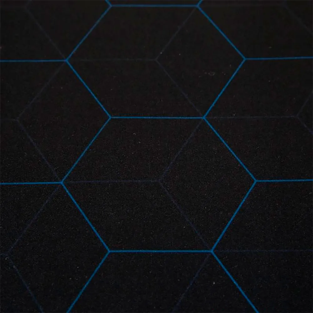 Über seine außergewöhnliche Leistung hinaus setzt das Hexa 1 ein kühnes visuelles Statement. Mit einem auffälligen Muster in einem dynamischen Schwarz-Blau-Farbschema verleiht sein modernes, hexagonales Design Ihrem Gaming-Rig oder Ihrer Workstation einen Hauch von anspruchsvollem Stil. Die lebendige Oberflächenfärbung ist nicht nur optisch ansprechend; sie ist so konzipiert, dass sie visuell unaufdringlich ist und gleichzeitig die Ästhetik Ihrer anderen Peripheriegeräte ergänzt.
