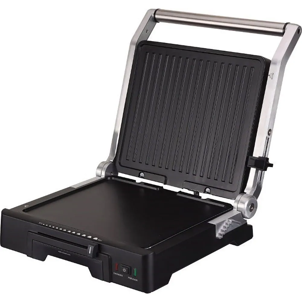 - Obere Platte in 6 Positionen verstellbar, speziell für Hamburger, Entrecôte, Sandwiches und Fisch