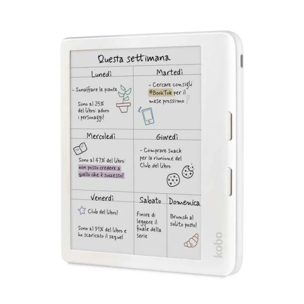Lesen Sie immer bequem: - Mit einer ergonomisch geschwungenen Form, die perfekt in Ihre Hand passt, ist der Kobo Libra Colour mit seinen Umblätterknöpfen, der Bildschirmdrehung nach links/rechts, der vollständigen Anpassung der Schriftgröße und des Randes sowie dem Querformat ein Genuss zum Lesen.
