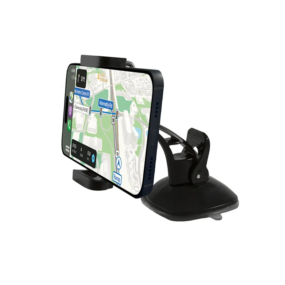Sein Befestigungssystem durch einen Saugnapf, verstärkt mit einer TPU-Schicht, gewährleistet einen perfekten Sitz der Halterung am Armaturenbrett des Autos (vermeiden Sie es, sie an Stellen zu platzieren, an denen sie das Fahren behindern oder möglichen Stürzen ausgesetzt sein könnte).