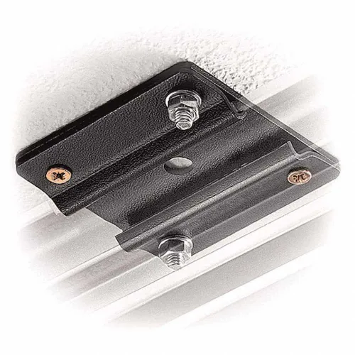 Halterung zur Deckenbefestigung der Schiene. Es empfiehlt sich, diese Halterungen vor der Verschraubung an der Decke auf den Schienen am Boden vorzumontieren, um eine korrekte Ausrichtung zu gewährleisten.