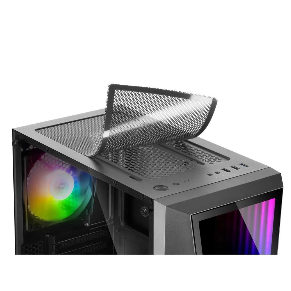 Seine Vorderseite verfügt über einen mehrschichtigen Spiegel mit ARGB-Beleuchtung, der Sie mit einem unendlichen Tiefeneffekt faszinieren wird. Wählen Sie ganz einfach aus 17 voreingestellten Modi, die mit den beiden mitgelieferten Lüftern synchronisiert werden, oder verwenden Sie den ARGB-Anschluss, um das gesamte System mit einem ARGB-Controller oder Motherboard zu steuern. Wählen Sie den Modus, der am besten zu Ihrem Setup passt, und genießen Sie unendlich viele ästhetische Möglichkeiten.