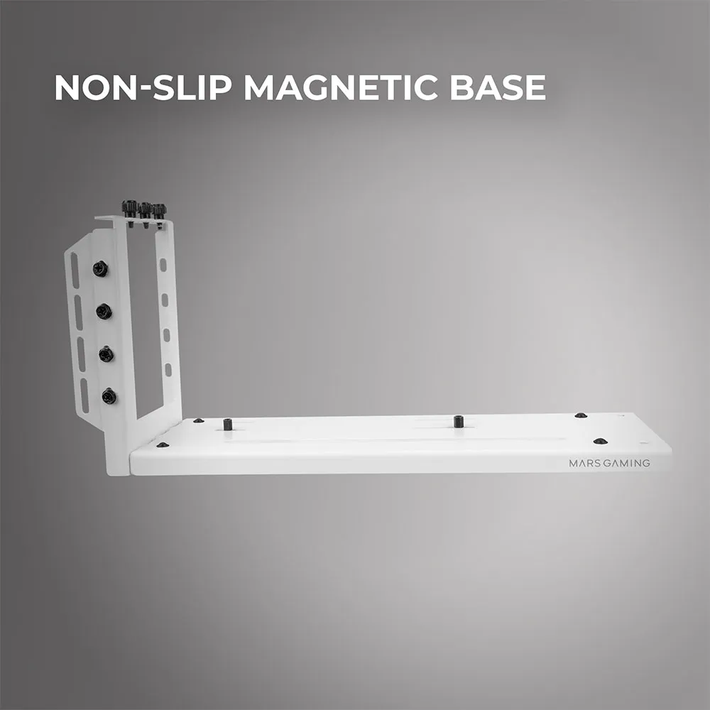 Verbessern Sie die Ästhetik und strukturelle Integrität Ihres Gaming-PCs mit dem Mars Gaming MCAGCVW ARGB Vertikalen Grafikkartenhalter. Entwickelt für Enthusiasten, die sowohl Leistung als auch Stil verlangen, löst diese essentielle Komponente das kritische Problem des Grafikkarten-Durchhängens und verwandelt Ihren Build in ein visuelles Meisterwerk. Schwere, leistungsstarke GPUs können erhebliche Belastungen auf den PCI-Express-Slot Ihres Motherboards ausüben, was im Laufe der Zeit zu potenziellen Schäden führen kann. Der MCAGCVW bietet eine solide Grundlage und stellt sicher, dass Ihre wertvolle Grafikkarte perfekt eben und sicher bleibt.