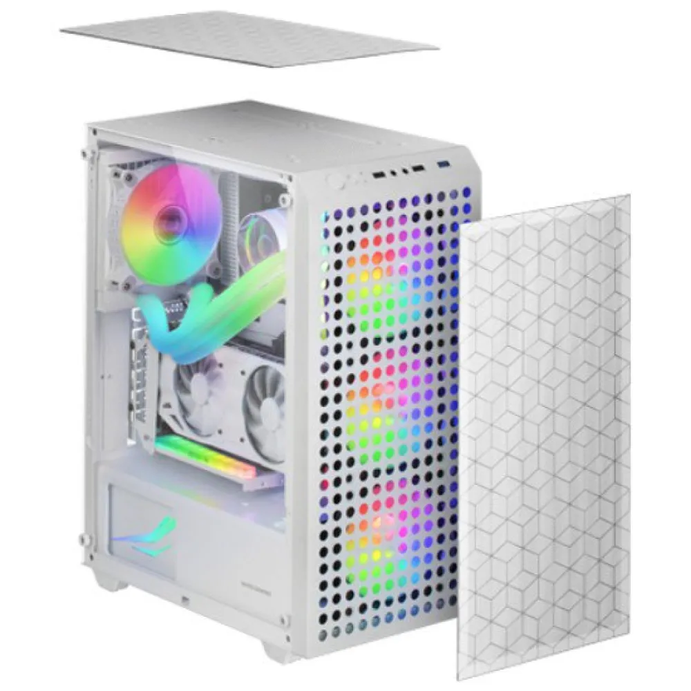 Das MC-MAG Gehäuse ist eine perfekte Fusion aus Design und fortschrittlicher Funktionalität. Es zeichnet sich durch sein einzigartiges doppeltes geometrisches magnetisches Gitterdesign aus, das eine außergewöhnliche Kühlung und Wartung bietet, und seine Seitenwand aus gehärtetem Glas, die nicht nur die internen Komponenten hervorhebt, sondern jeder Konfiguration auch einen Hauch von Raffinesse verleiht. Effektives Kühlsystem mit 3x 120mm Fixed RGB 120mm Lüftern an der Vorderseite und Unterstützung für Wasserkühlung bis zu 360mm. Kompatibel mit ATX-Mainboards, ideal für fortgeschrittene und anspruchsvolle Setups.