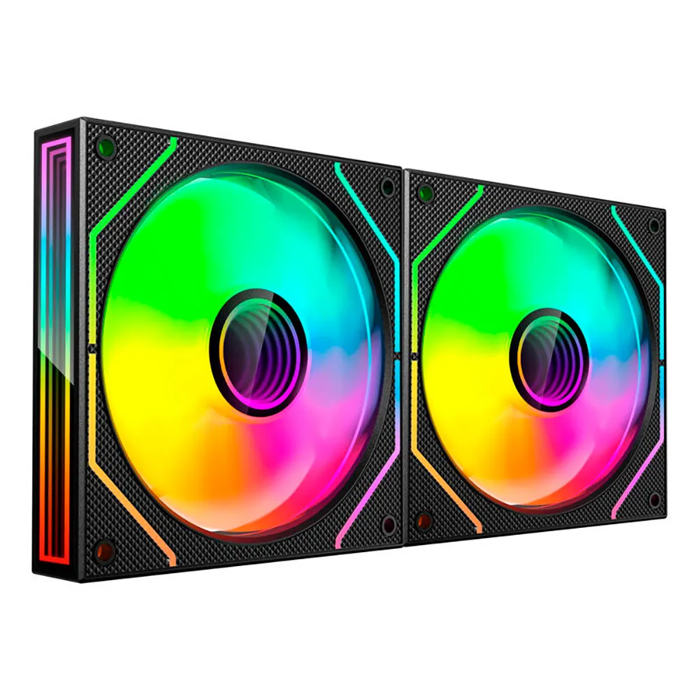 Ausgestattet mit zwei 120-mm-Lüftern mit FDB-Lager und einem PWM-Steuerungssystem, gewährleistet es einen leisen und stabilen Betrieb, während sein dynamischer ARGB-Rahmen mit 360º Multi-Layer-Effekten jedes Setup in ein wahrhaft immersives visuelles Erlebnis verwandelt.