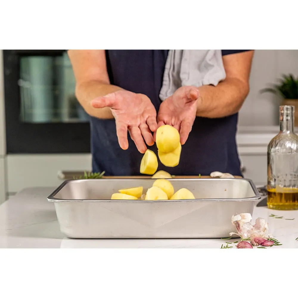 Machen Sie mit der MasterClass-Bratpfanne aus recyceltem Aluminium das Sonntagsessen zu einem Kinderspiel.