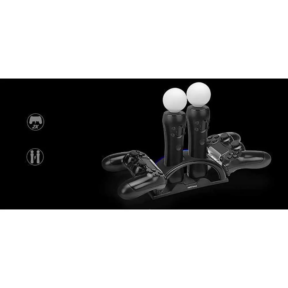 Lade- & Ständer für PS®Move- und PS4®-Controller: Eine integrierte Lösung, die Ihre wichtigsten PlayStation-Peripheriegeräte sowohl mit Strom versorgt als auch ordentlich organisiert Ladestation für zwei PS4®-Controller und zwei PS® Move-Controller: Bietet spezielle Ladeschächte zum gleichzeitigen Laden von zwei DUALSHOCK®4 Wireless-Controllern und zwei PlayStation®Move Motion-Controllern.