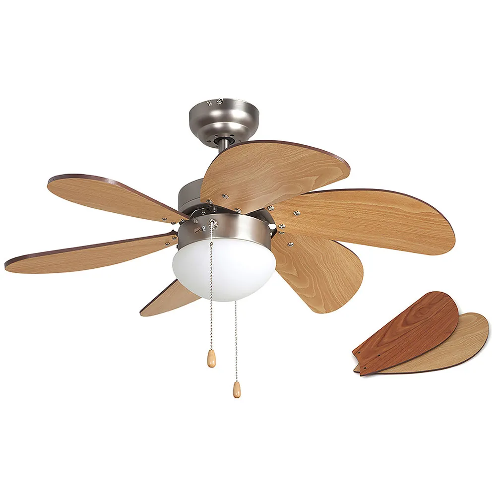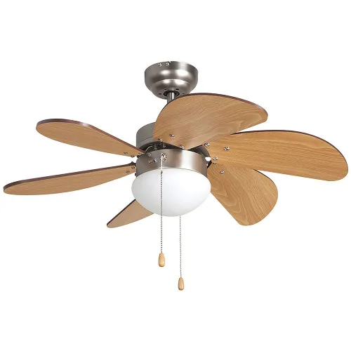 Der CP 15075 von Orbegozo ist aus Nickel mit 6 holzfarbenen Flügeln gefertigt.