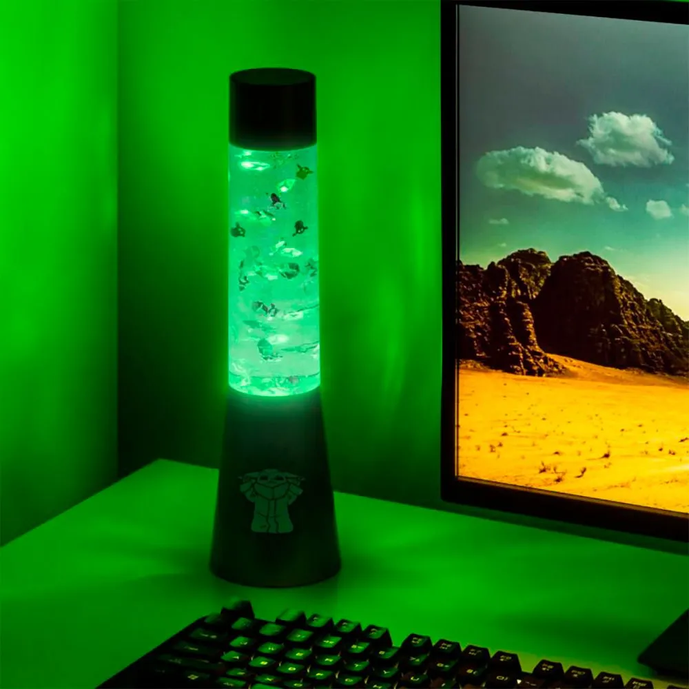Beleuchten Sie Ihr Zimmer und machen Sie es mit dieser erstaunlichen Paladone Grogu Lampe lustig! Grogu Flow Lamp bietet Fans der beliebten Disney+-Serie The Mandalorian ein unglaubliches sensorisches Erlebnis. Die 13 Zoll hohe Kunststoff-Lavalampe ist mit fließenden Silberfolienformen und Glitzer gefüllt. Schalten Sie das Licht ein, um Grogus und den Mandalorianer süße Helme schweben zu sehen, während sie mit ihren rhythmischen Bewegungen einen grünen Glanz in Ihr Zimmer werfen. Diese Flow-Lampe wird jedes Schlafzimmer, Männerhöhle oder Gaming-Setup schön dekorieren und den letzten Schliff verleihen. Diese Flow-Lampe ist offiziell lizenziertes Disney-Merchandise und eignet sich hervorragend als Geschenk für Star Wars-Fans, Spieler und Sammler von Erinnerungsstücken, jung und alt.