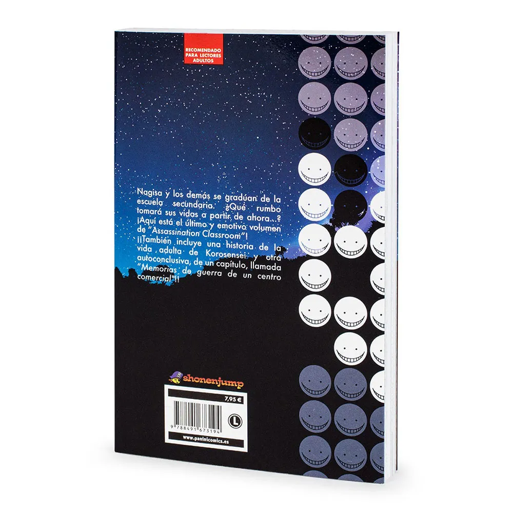 Nagisa und die anderen absolvieren die High School. In welche Richtung wird ihr Leben von nun an gehen? Hier ist der neueste emotionale Band von „Assassination Classroom“. Er enthält auch eine Geschichte aus Korosenseis Erwachsenenleben und eine in sich geschlossene Ein-Kapitel-Geschichte mit dem Titel „Kriegserinnerungen an ein Einkaufszentrum“.