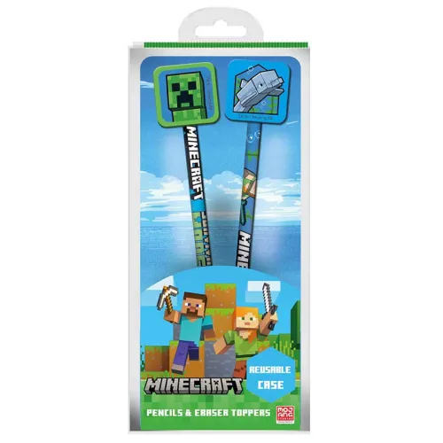 Minecraft Bleistift mit Aufsatz 2er-Pack – Offizielle Pyramid Schreibwaren für Spieler