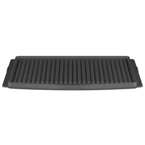 Auf der geriffelten Seite zaubern Sie wunderschöne, restaurantwürdige Grillstreifen auf dick geschnittene Steaks, saftige Burger, zarte Hähnchenbrust und Schweinekoteletts. Die erhöhten Rillen heben Ihre Speisen an, sodass überschüssiges Fett und Öl abfließen können – für eine gesündere, fettärmere Mahlzeit, ohne dabei Feuchtigkeit oder Geschmack einzubüßen. Diese Seite ist auch perfekt zum Grillen von Halloumi, Paninis und robustem Gemüse wie Maiskolben und Paprikastreifen, wobei sie eine rauchige Note und eine unwiderstehliche Textur verleiht.