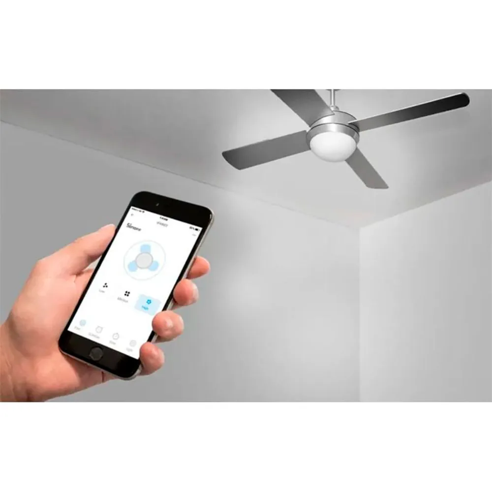 Einfache Installation - 2.4 GHz WLAN - Steuerung über eWeLink APP oder mit 433MHz RF-Fernbedienung - Gemeinsame Steuerung - 3 Lüftergeschwindigkeitsstufen - Kompatibel mit Amazon Alexa und Google Assistant - Programmierbar - Weiß.